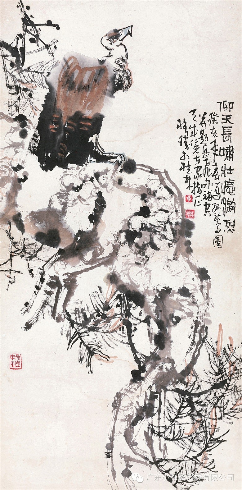 款识:仰天长啸,壮怀激烈。癸亥年春写孤鹫图并题岳飞句补空,天成仁兄方家指正,格胜于桂林。