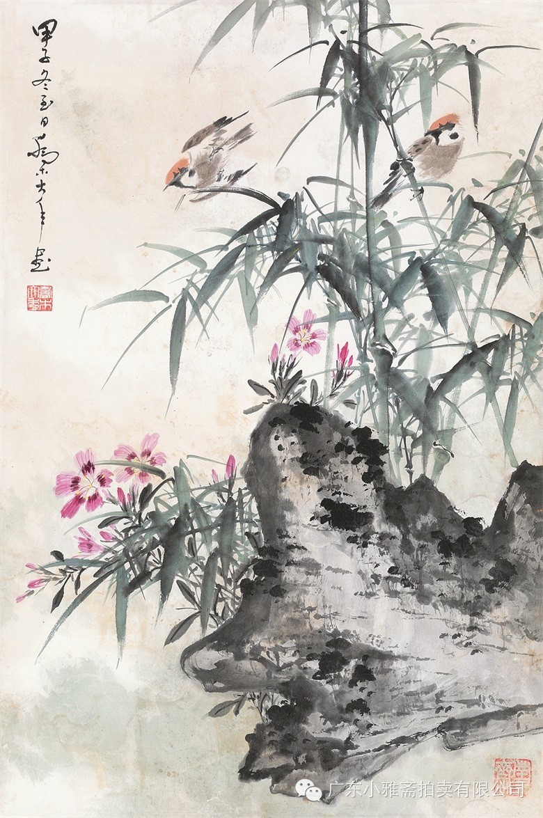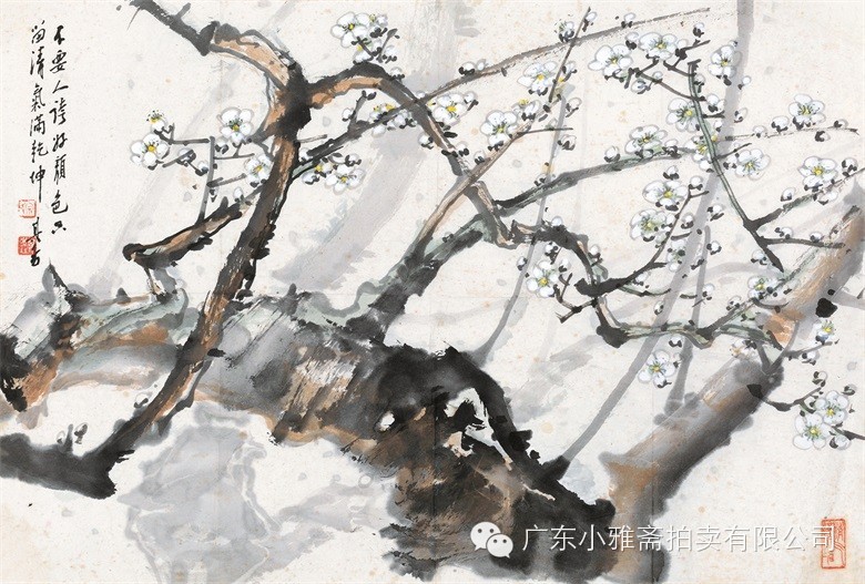 黎振欧(b.1925),别署晓光,广西阳朔人。擅写意花鸟,尤以竹、梅见长。广西美术家协会会员、广西书法家协会会员、桂林画院特聘画师、广西书画院院士、阳朔画院名誉院长、桂林漓江画会副会长。