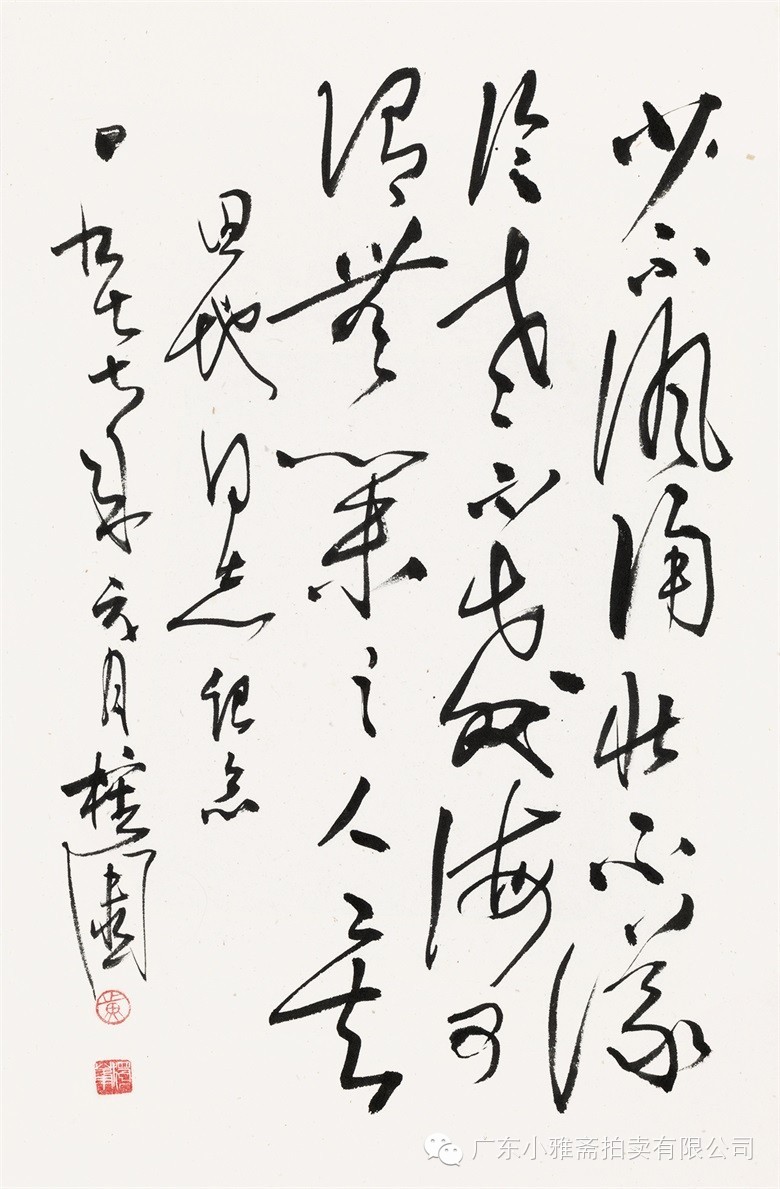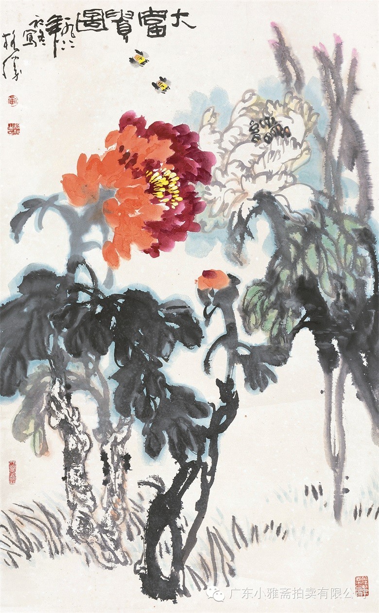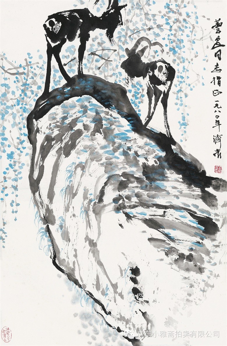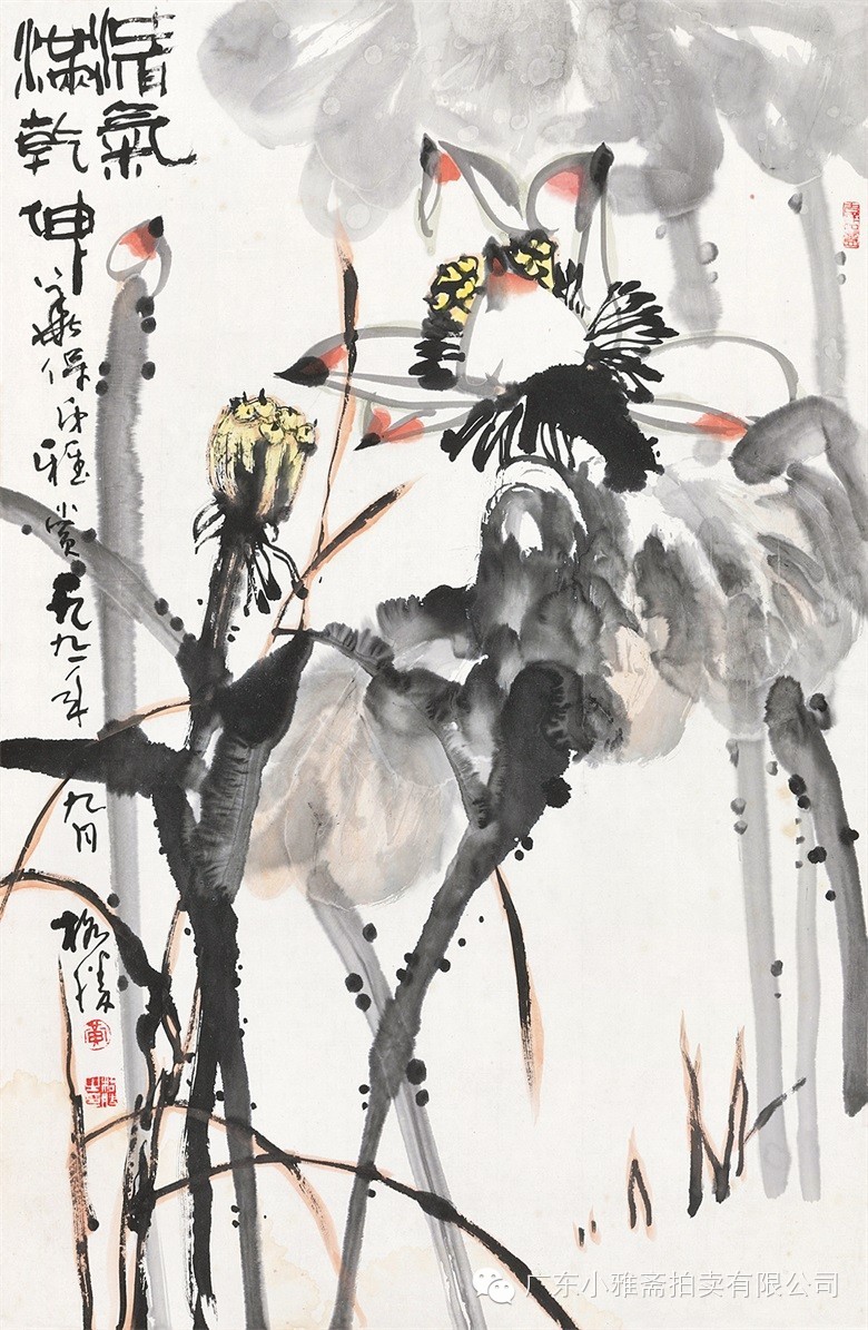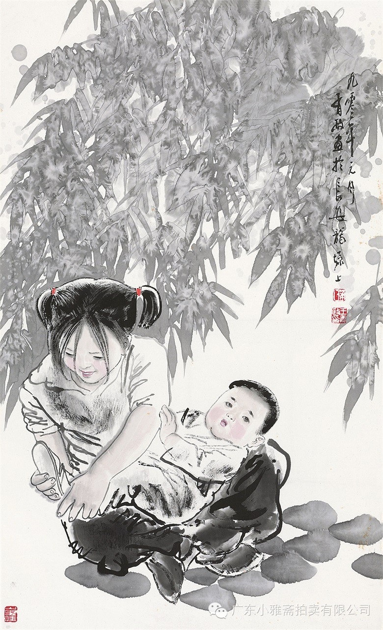 说明:上款人谢天成(b.1950),广东茂名市人。刘海粟先生的得意门生。刘海粟艺术研究院院长,北京大学资源学院客座教授,上海电影艺术学院客座教授,全国城市雕塑建设指导委员会委员,广西大学艺术学院客座教授。拍品由上款人得自画家本人。