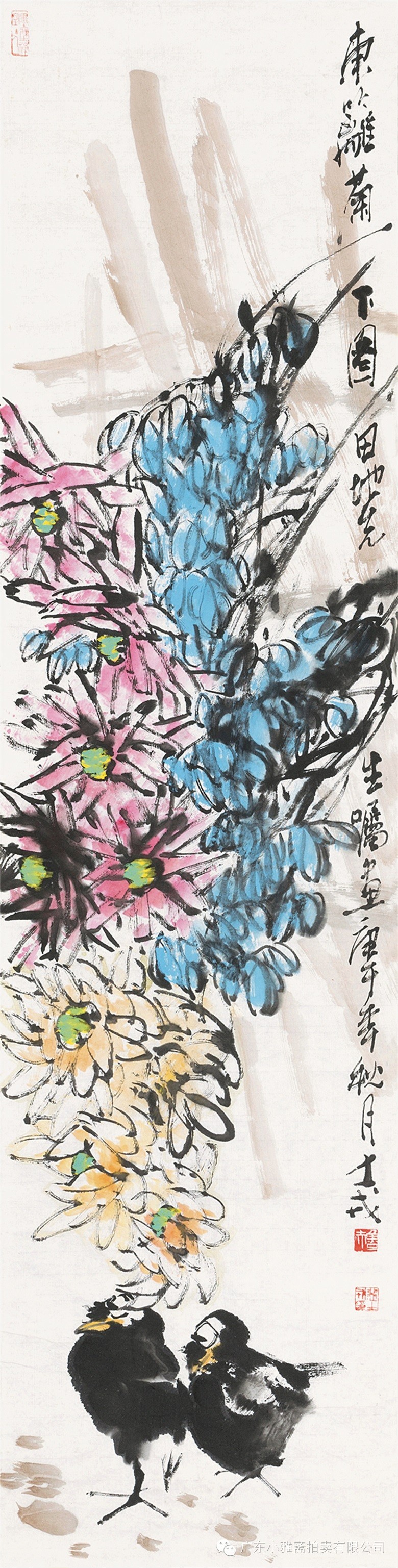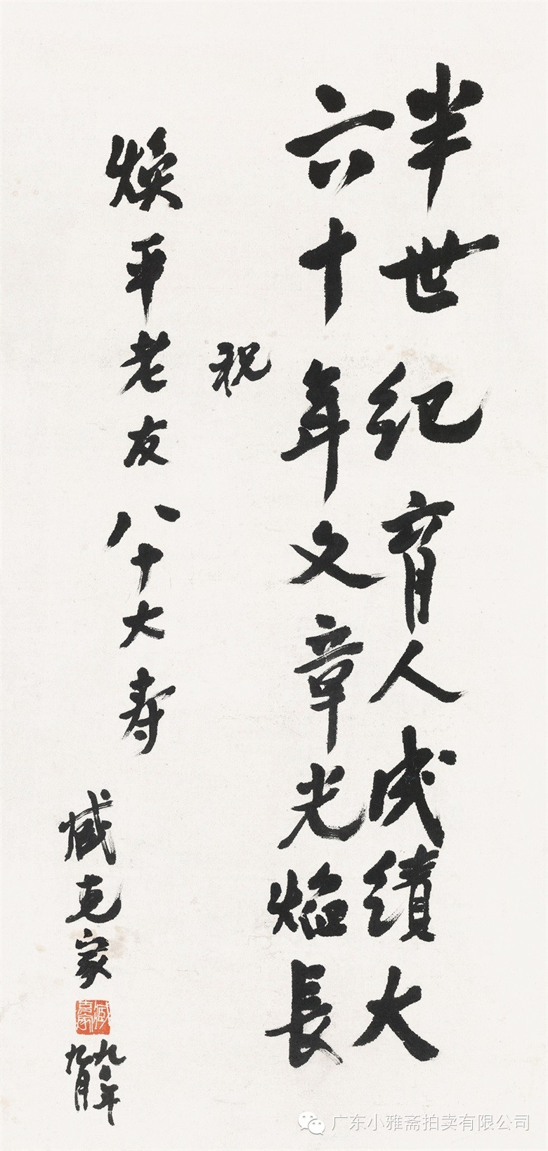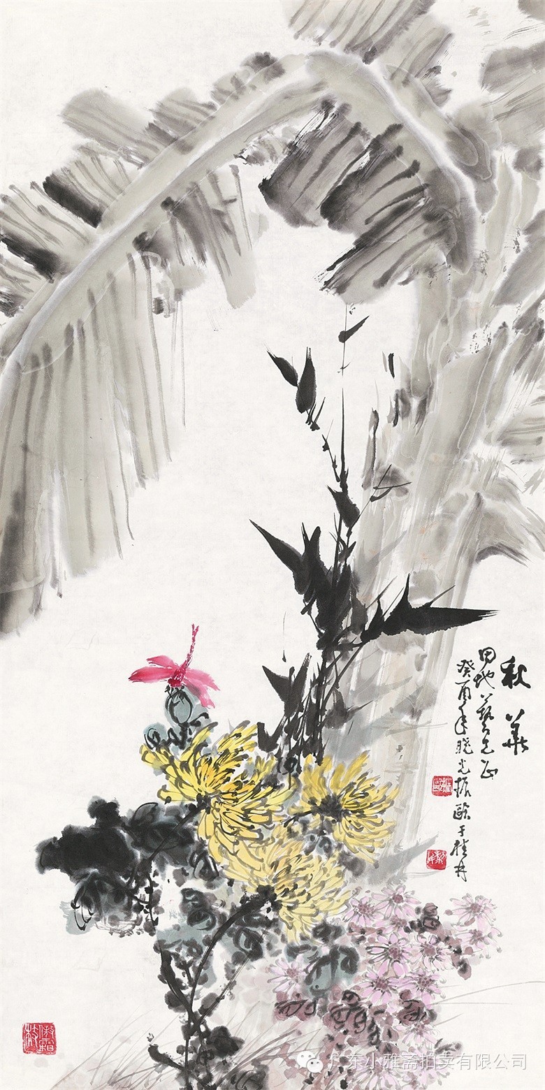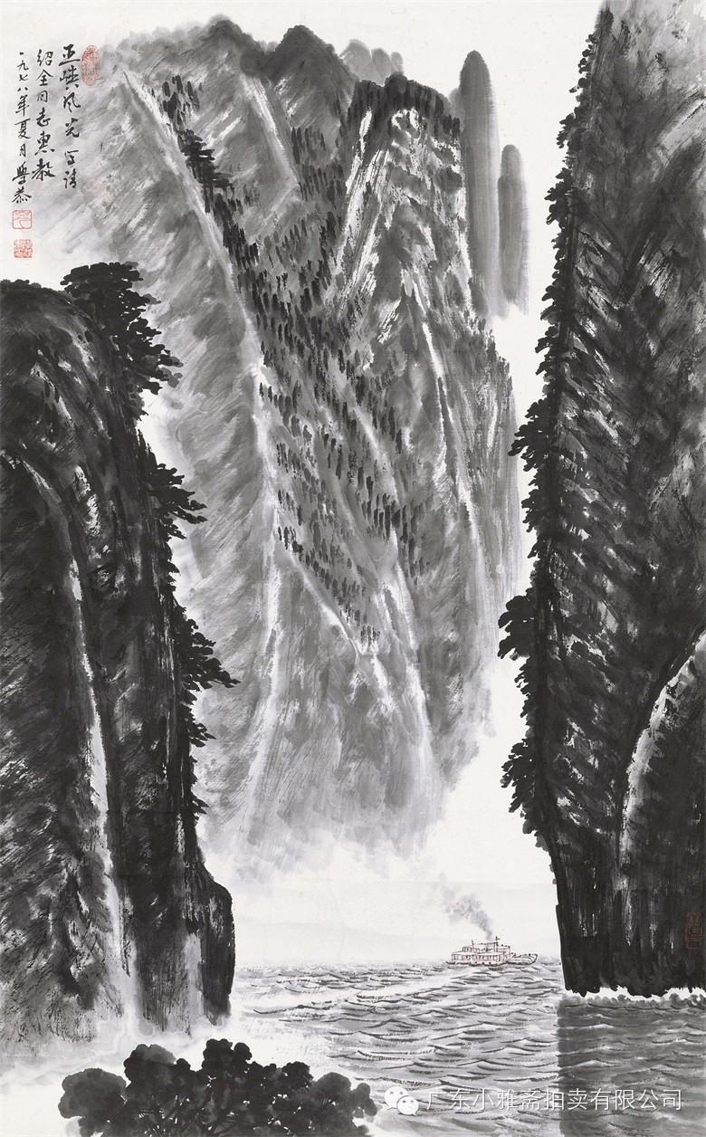 说明:上款人谢天成(b.1950),广东茂名市人。刘海粟先生的得意门生。刘海粟艺术研究院院长,北京大学资源学院客座教授,上海电影艺术学院客座教授,全国城市雕塑建设指导委员会委员,广西大学艺术学院客座教授。拍品由上款人得自画家本人。