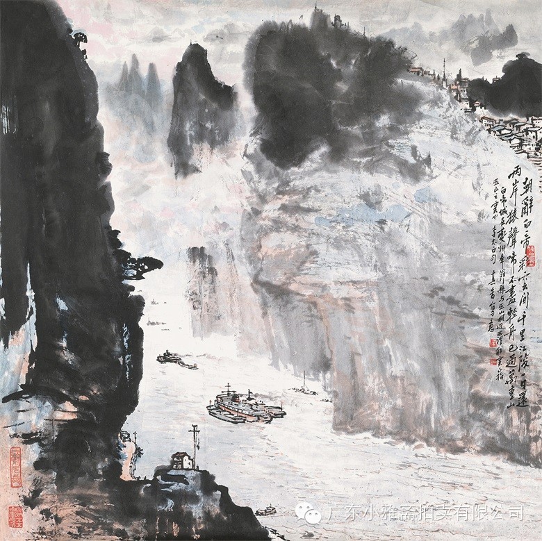 款识:朝辞白帝彩云间,千里江陵一日还。两岸猿声啼不住,轻舟已过万重山。白帝城在虁州奉节县,与巫山相近。所谓彩云,正指巫山之云也。李太白句,其香写意。