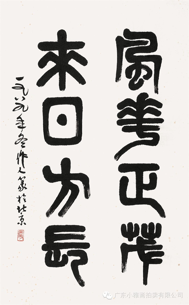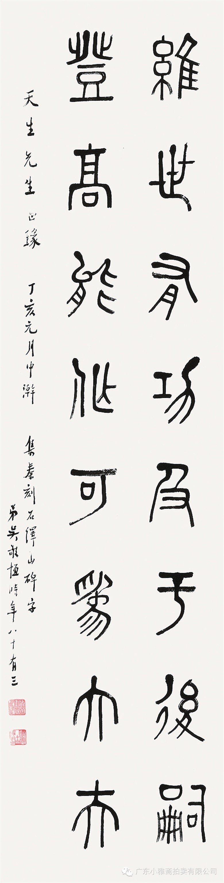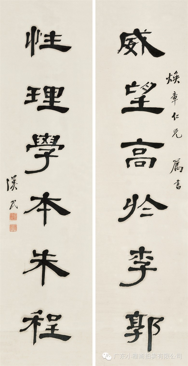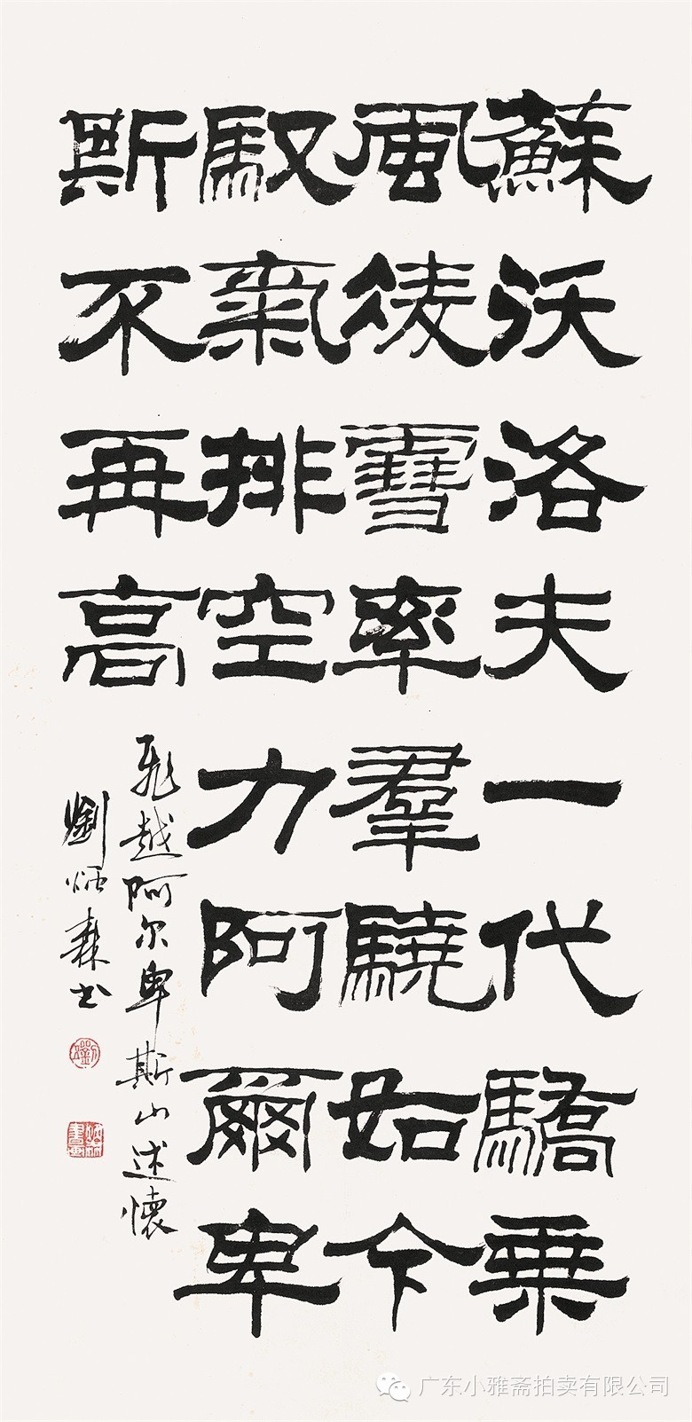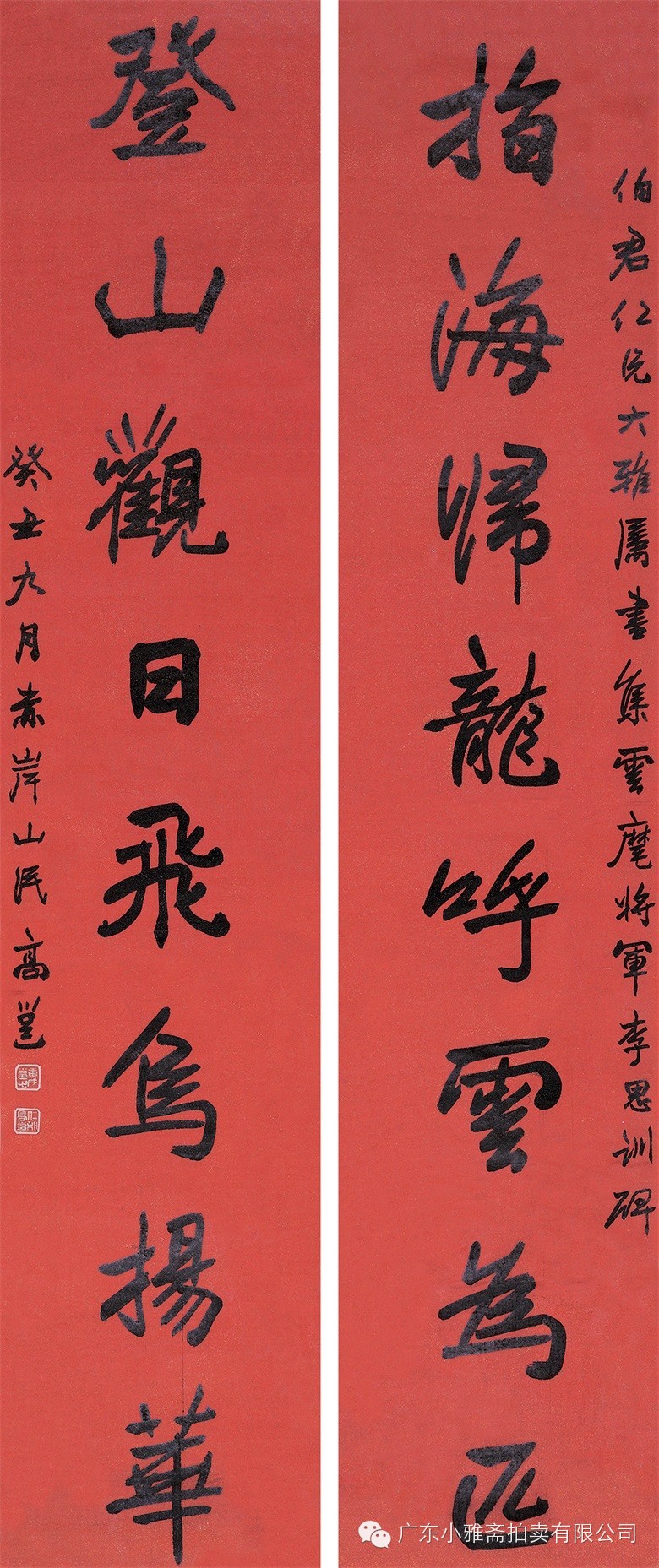 款识:指海归龙呼云为匹,登山观日飞鸟扬华。伯君仁兄大雅属书。集云麾将军李思训碑,癸丑九月赤岸山民高邕。