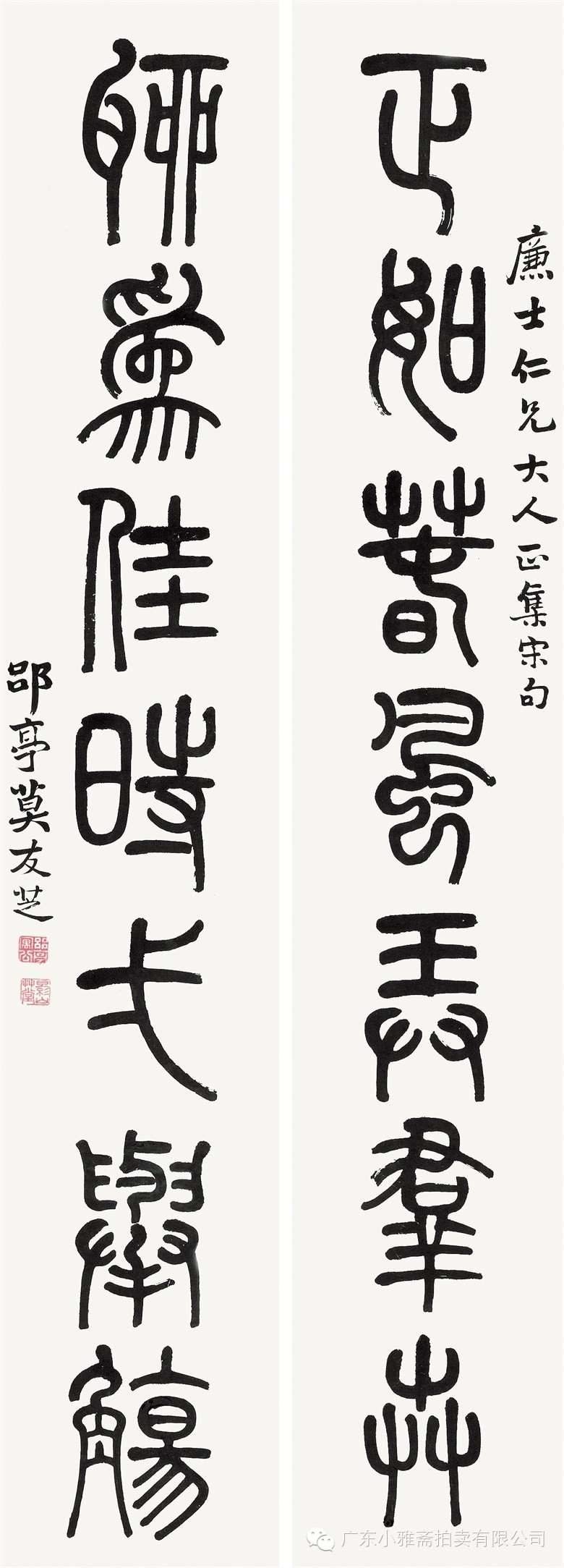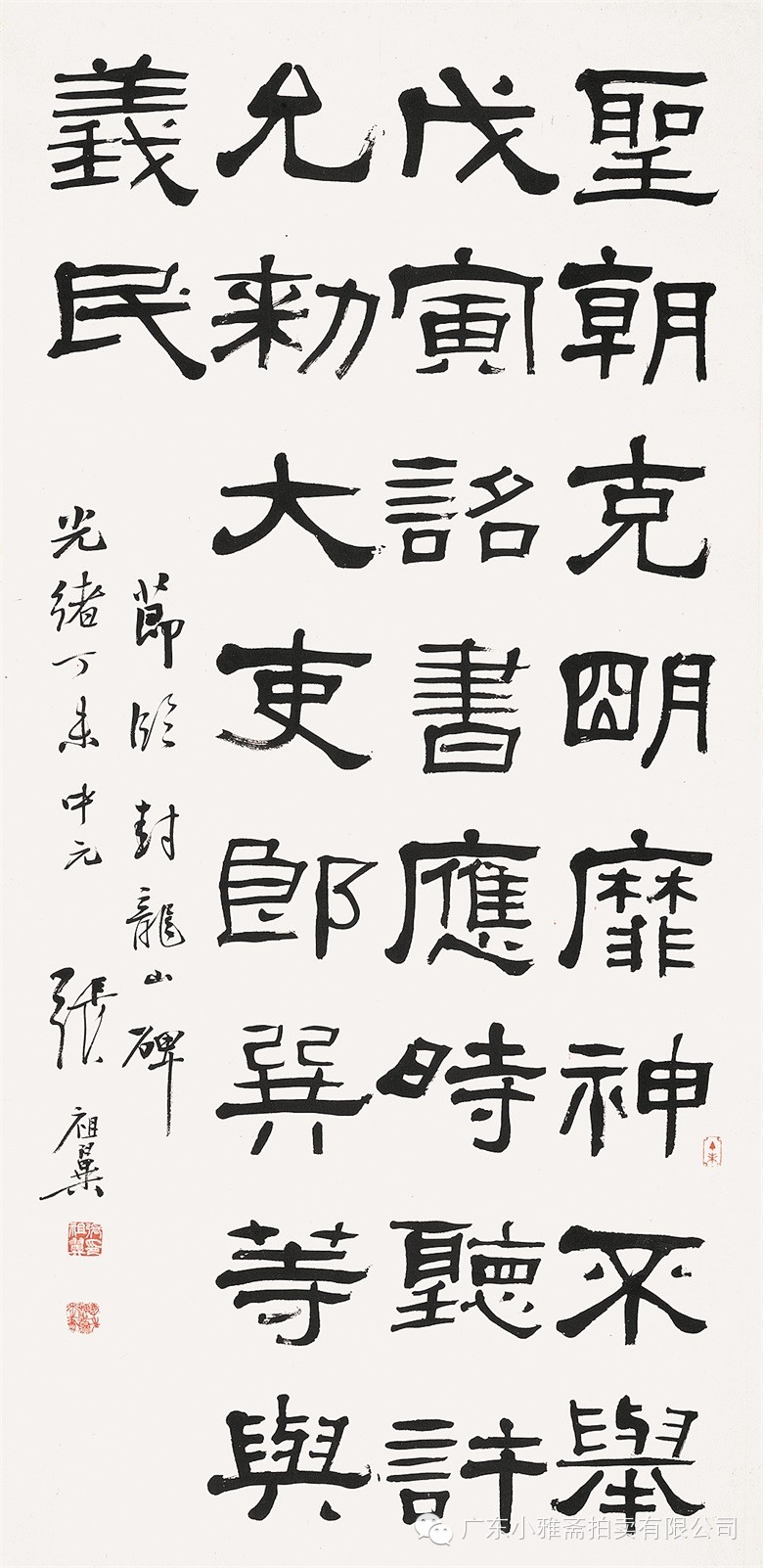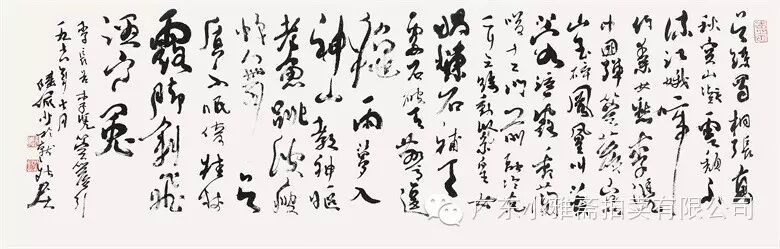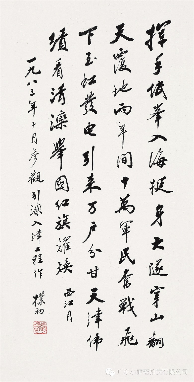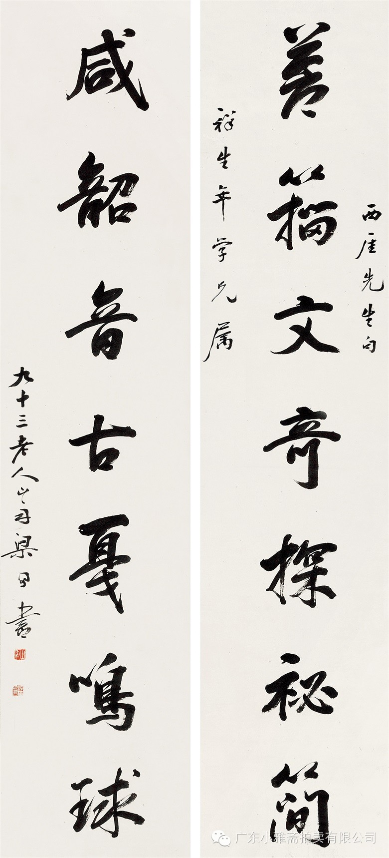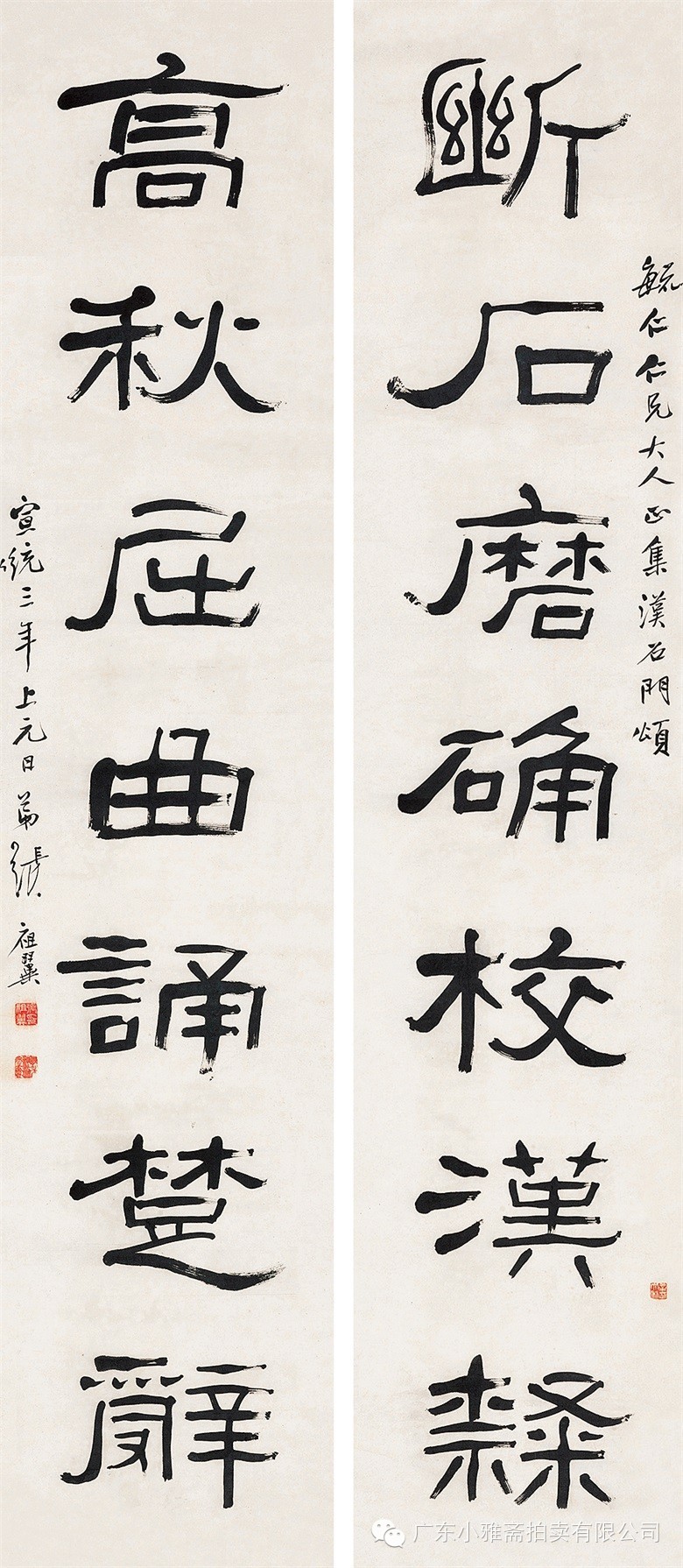 款识:指海归龙呼云为匹,登山观日飞鸟扬华。伯君仁兄大雅属书。集云麾将军李思训碑,癸丑九月赤岸山民高邕。