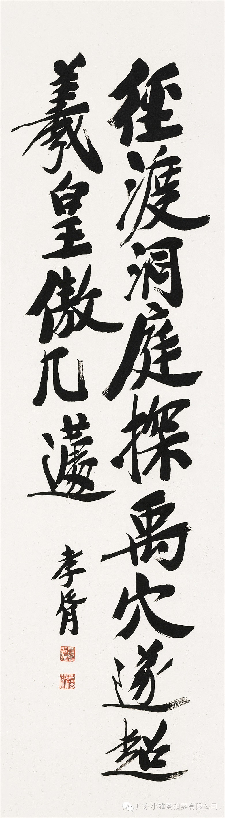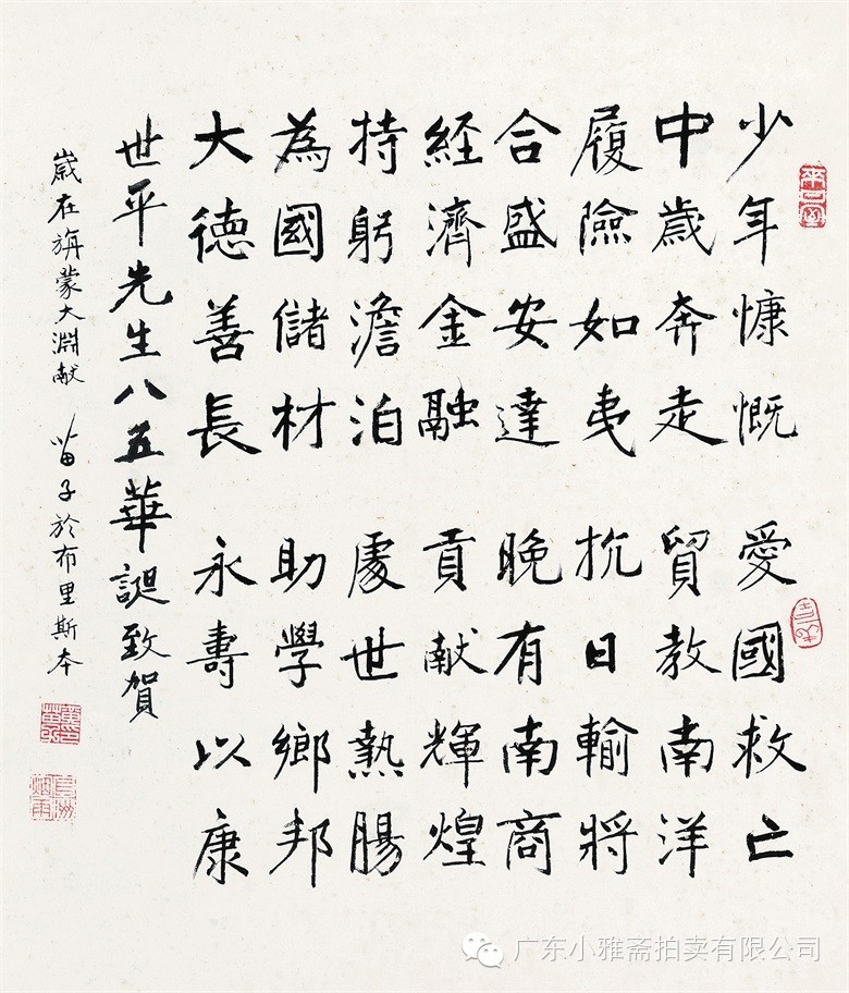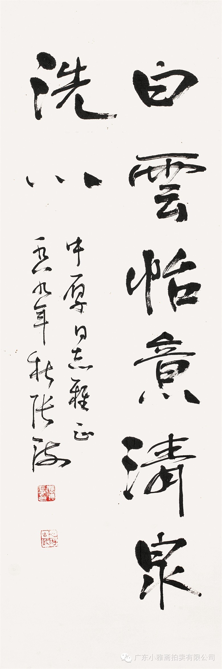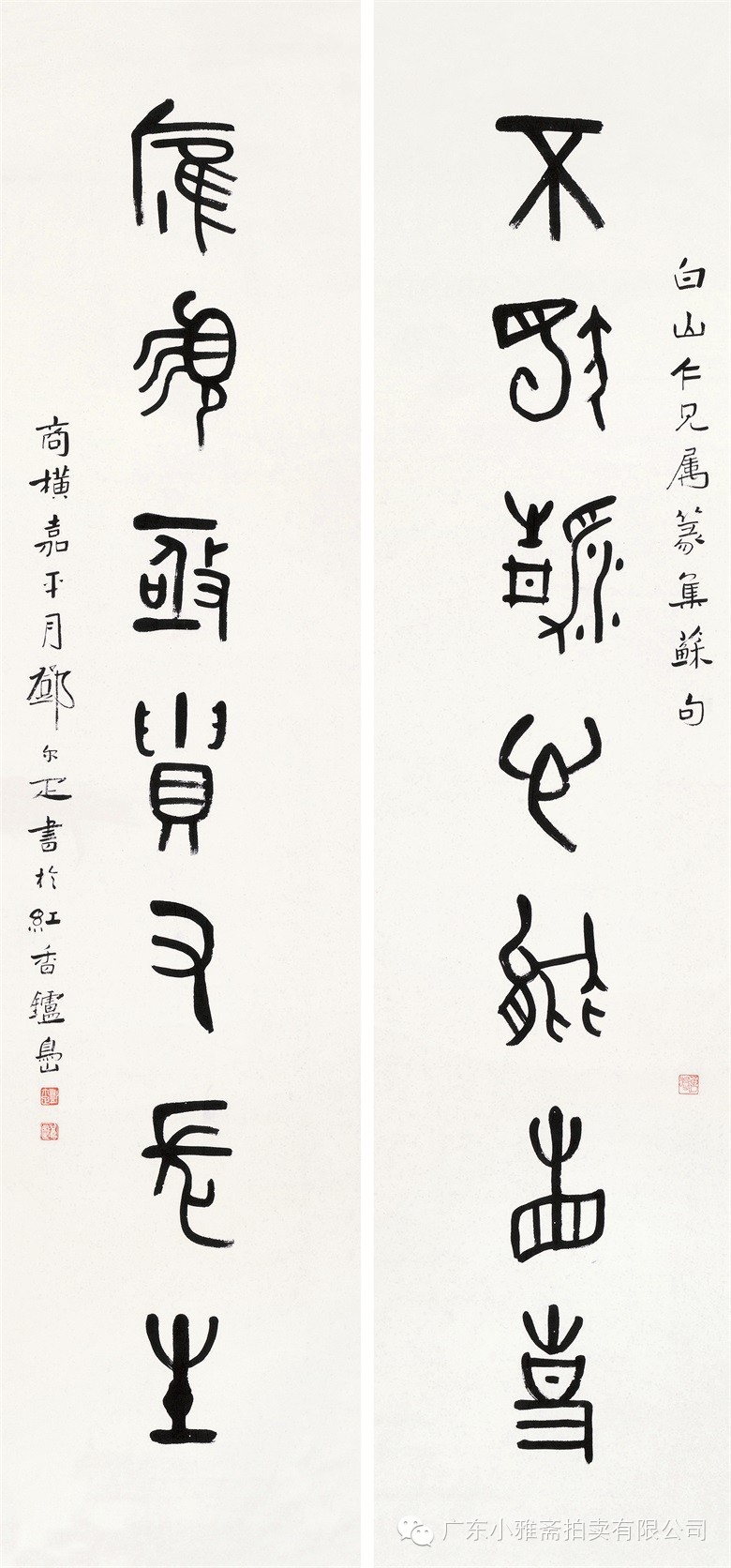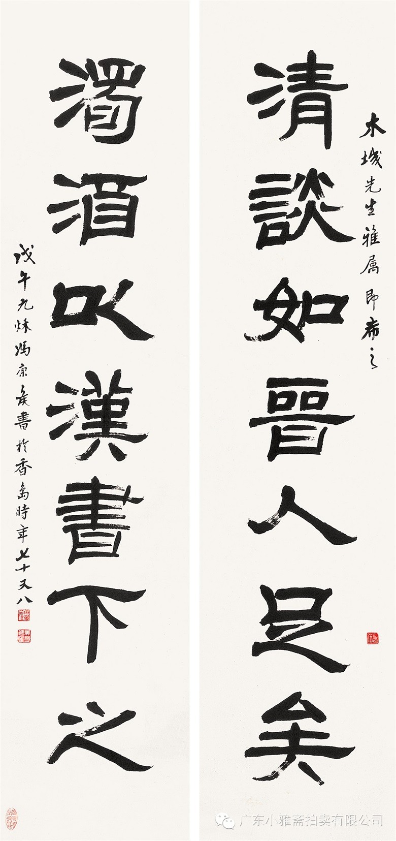 款识:指海归龙呼云为匹,登山观日飞鸟扬华。伯君仁兄大雅属书。集云麾将军李思训碑,癸丑九月赤岸山民高邕。