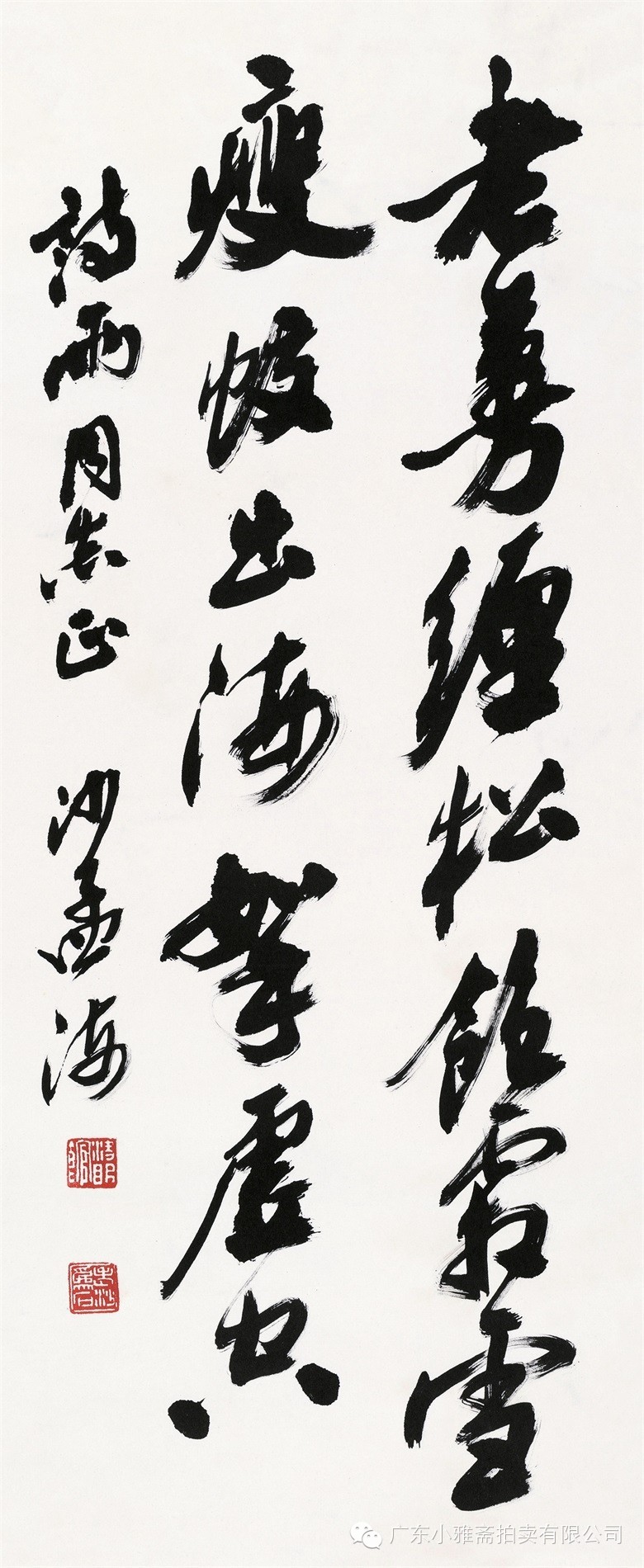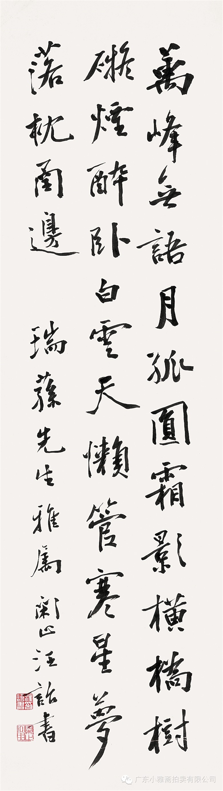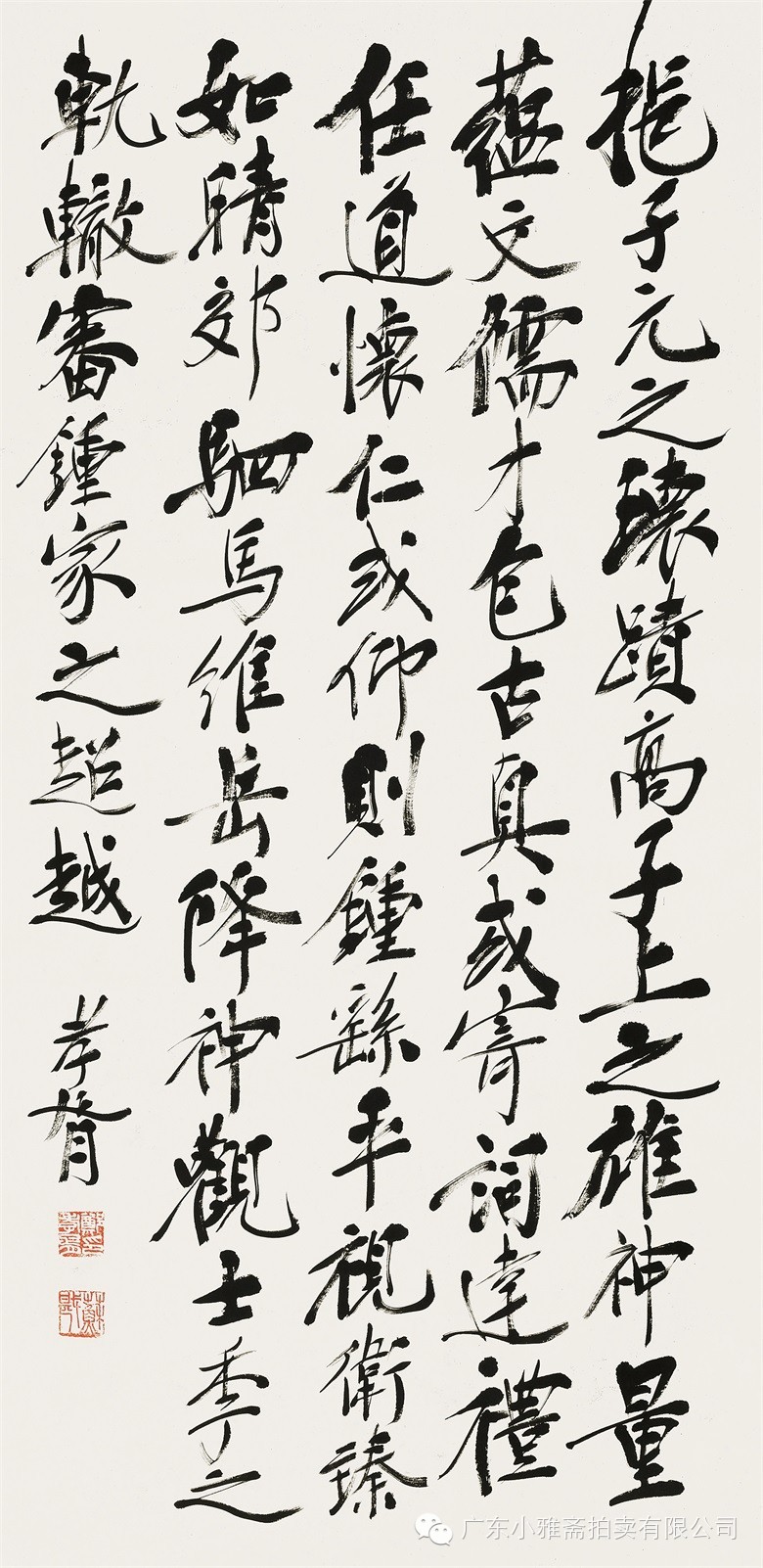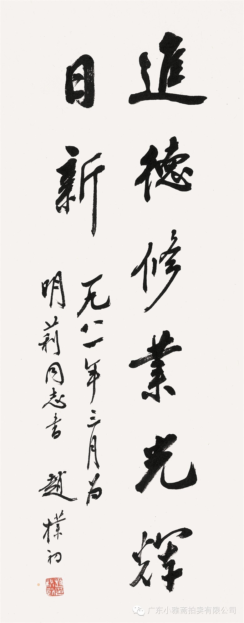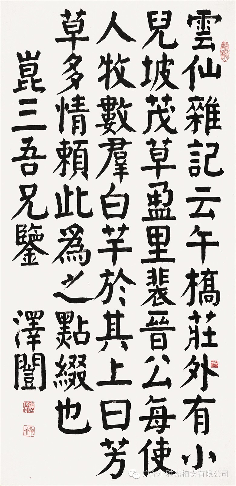 款识:指海归龙呼云为匹,登山观日飞鸟扬华。伯君仁兄大雅属书。集云麾将军李思训碑,癸丑九月赤岸山民高邕。