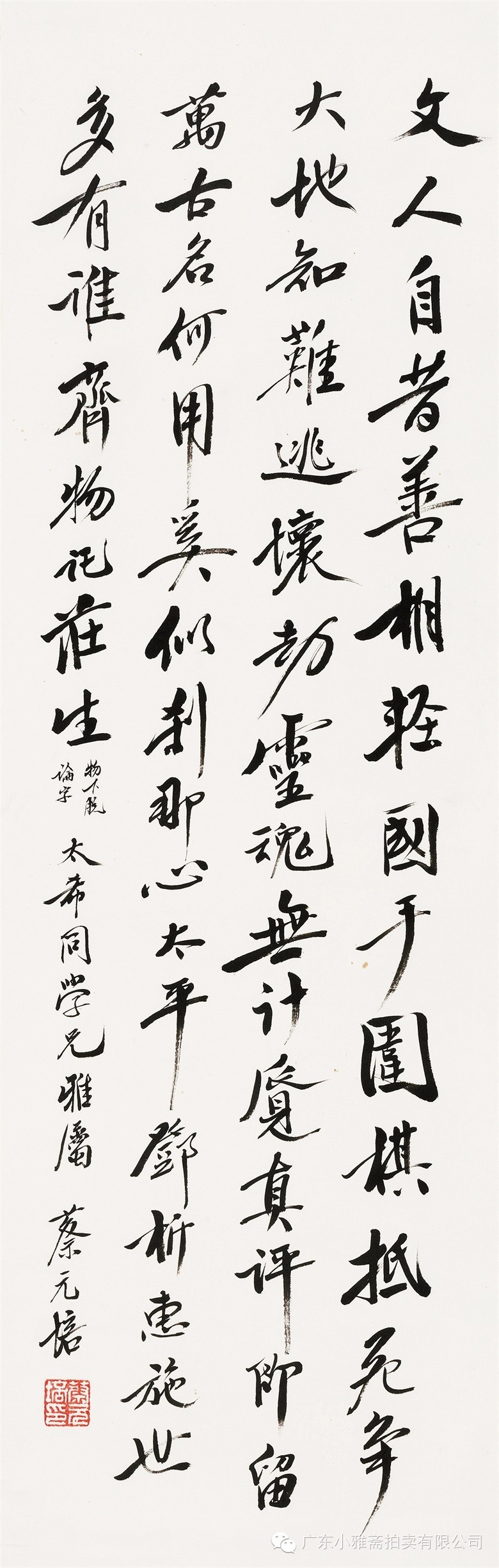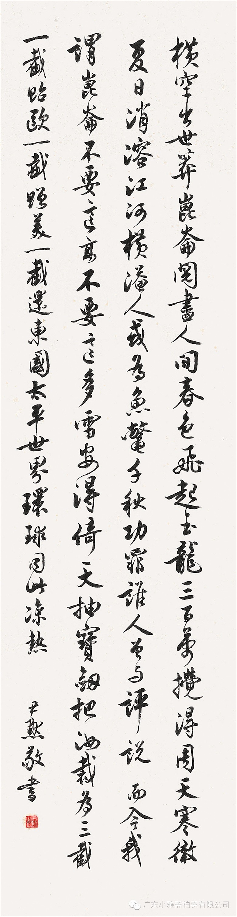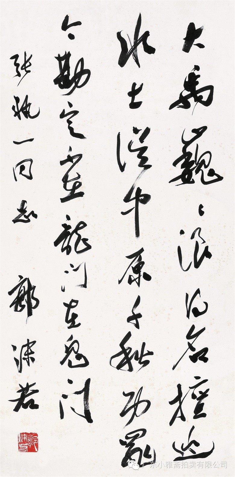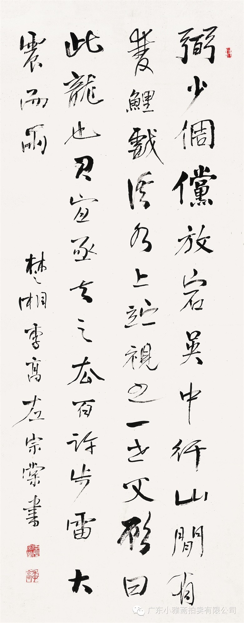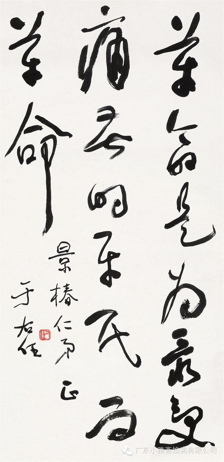 款识:指海归龙呼云为匹,登山观日飞鸟扬华。伯君仁兄大雅属书。集云麾将军李思训碑,癸丑九月赤岸山民高邕。
