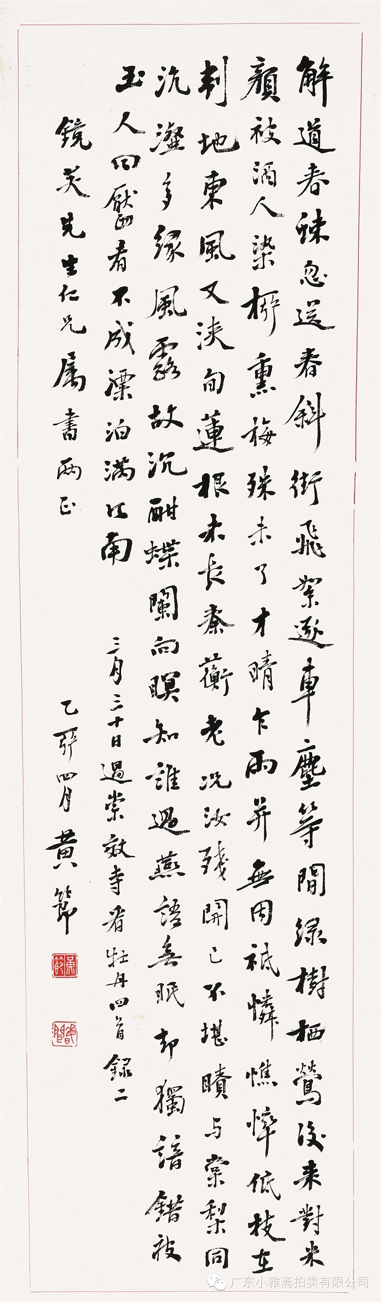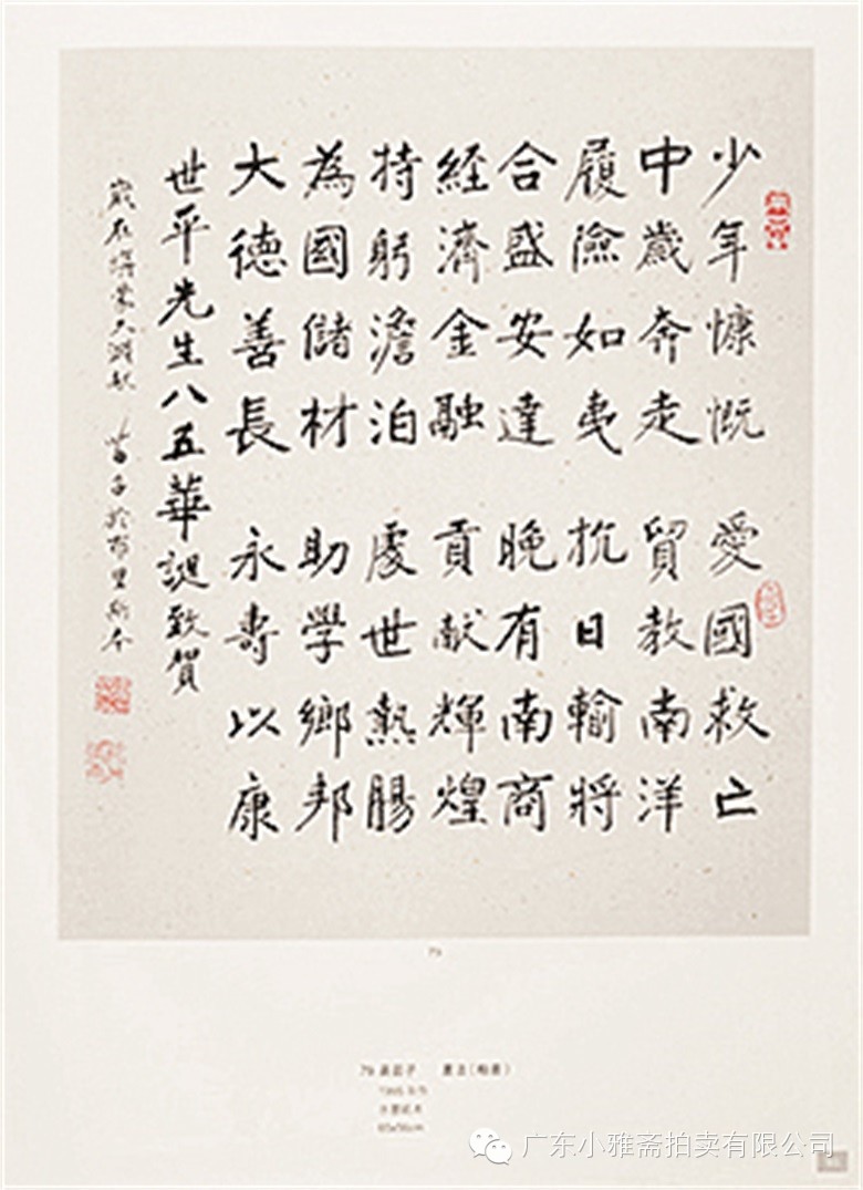 款识:①毅庙临轩早得贤,紫薇花下望如仙。却从沧海横流日,回溯乡山大比年。科弟亦因才望重,耆英况有事功传。四春周甲恩荣近,运会循环自信天。省三仁兄大公祖大人重宴鹿鸣志喜。弟宝琛。