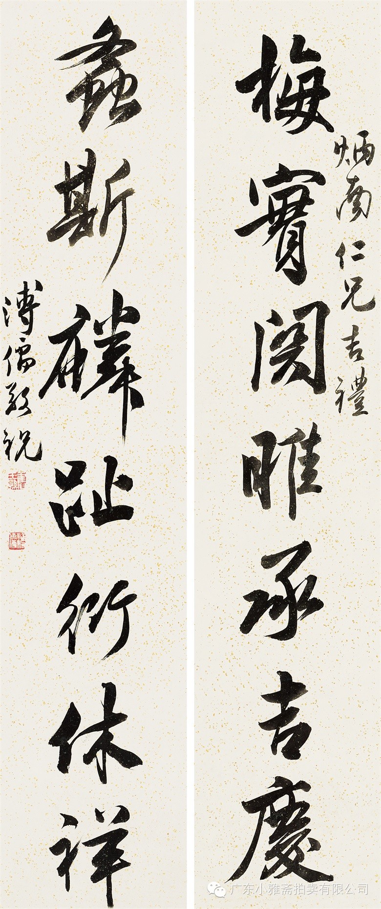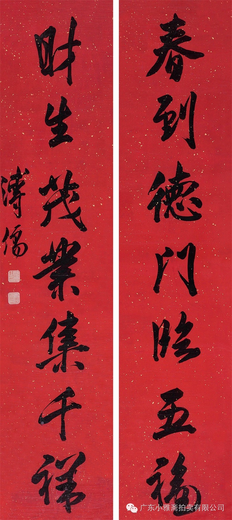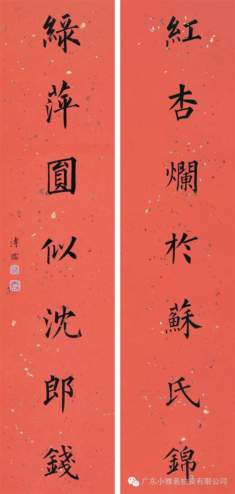 水墨洒金红笺 对联
