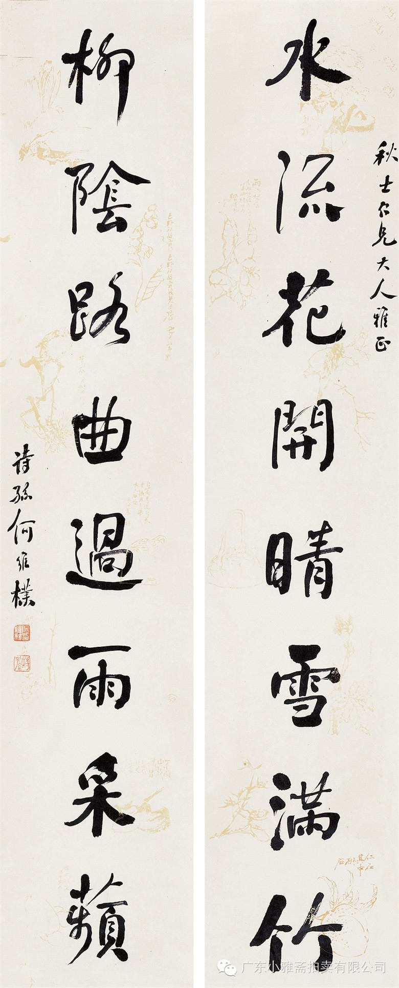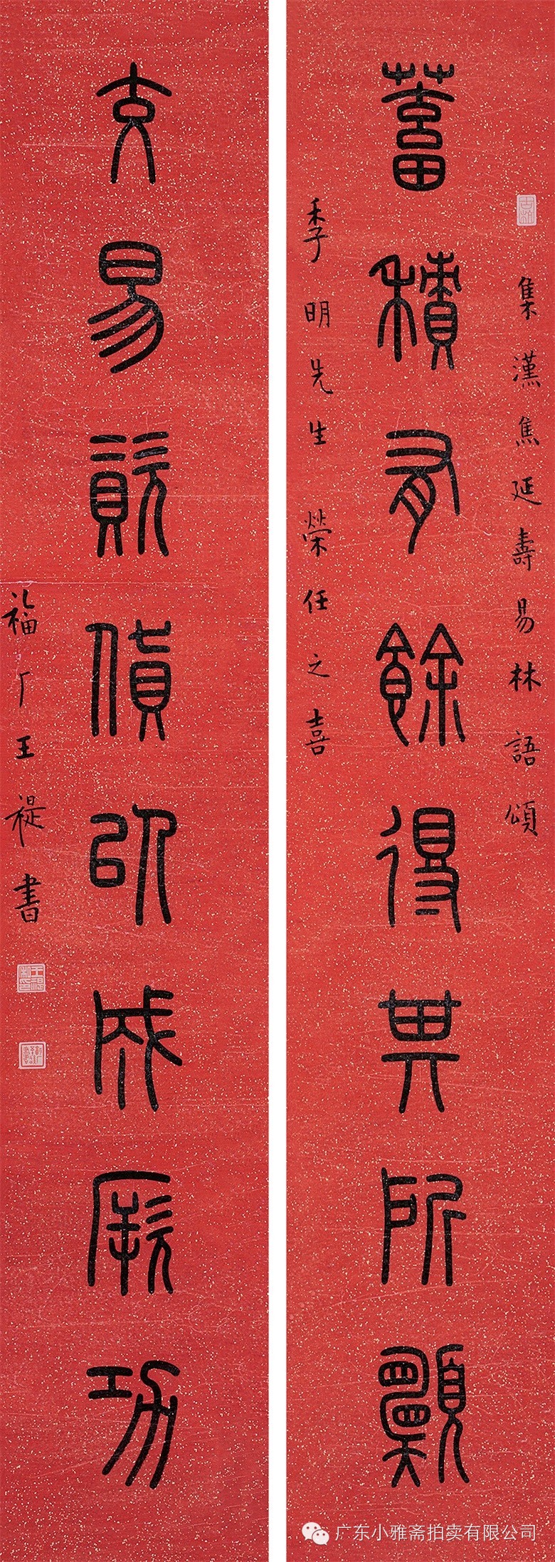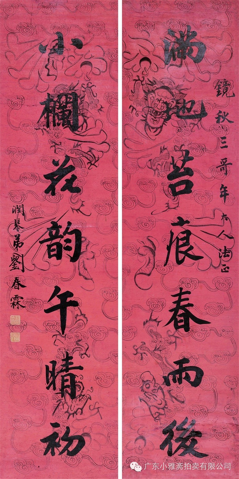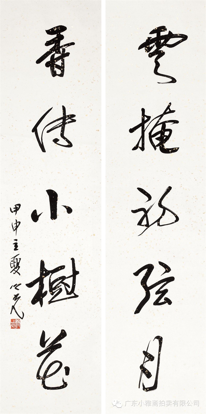 水墨洒金红笺 对联
