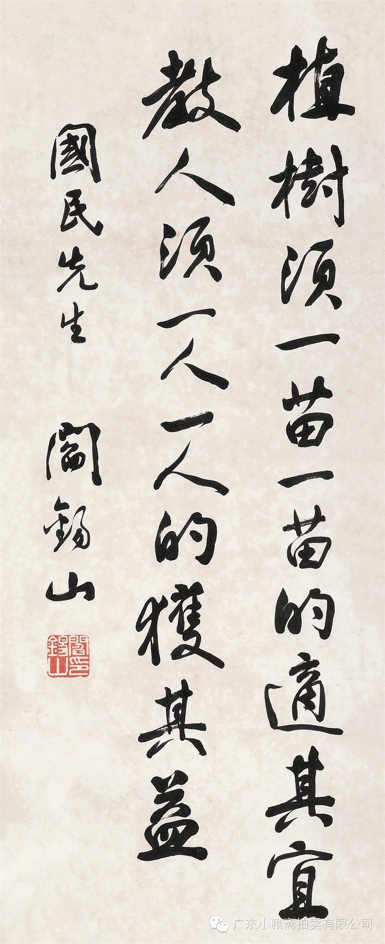 款识:琴言清若水,诗梦暖于春。国强先生鉴政,一九五零年春,剑父。