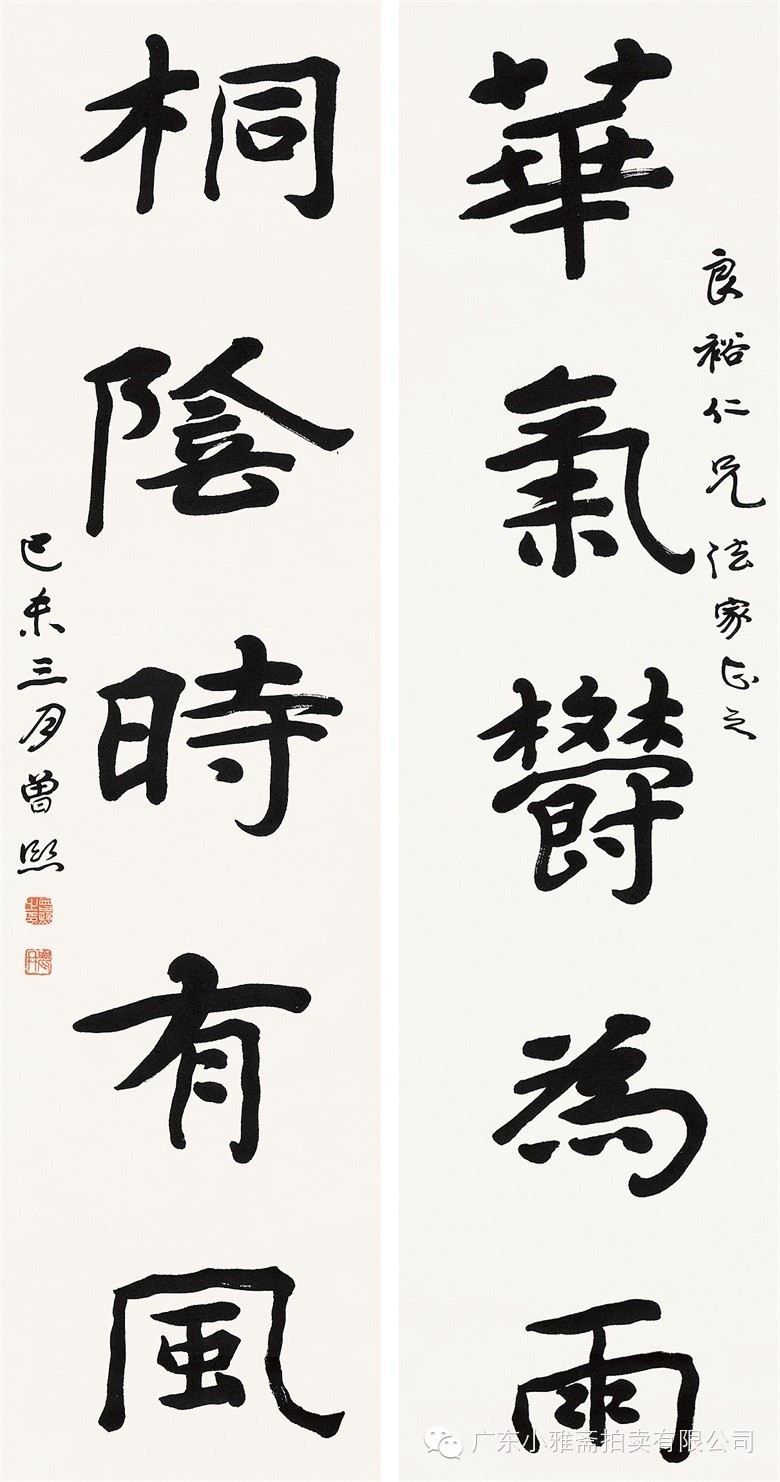 款识:花气欝为雨,桐阴时有风。良裕仁兄法家正之,己未三月曾熙。