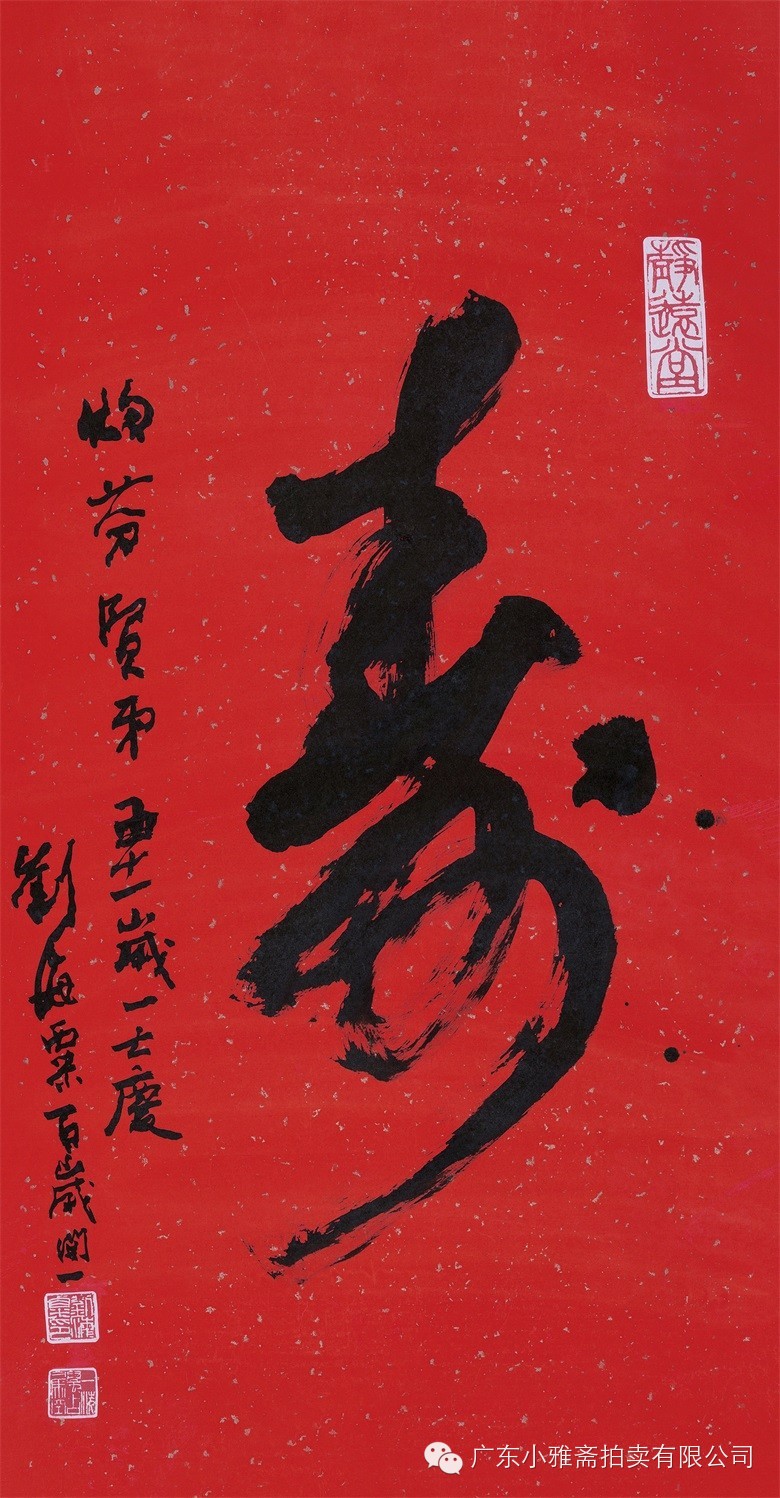 款识:寿。灼芬贤弟五十一岁一七庆,刘海粟百岁开一。