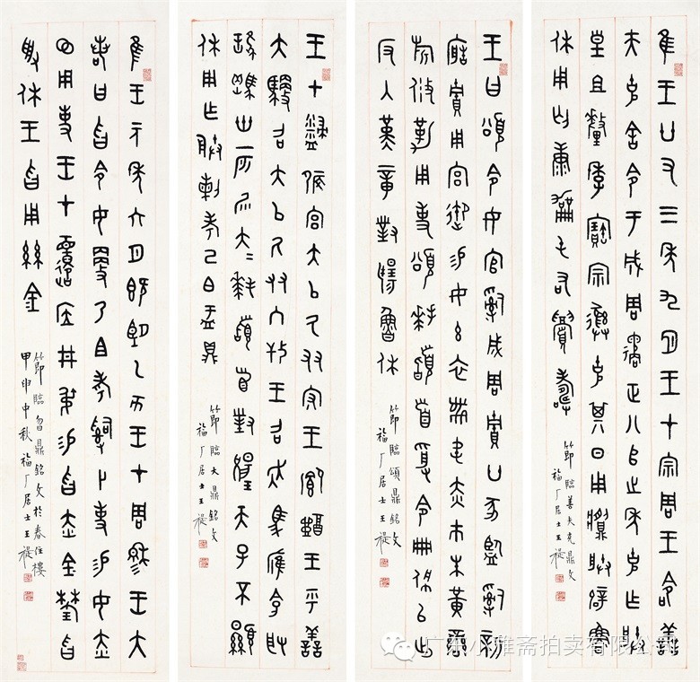 王福庵(1880-1960),原名禔、寿祺,字维季,号福庵,以号行,斋名麋研斋。浙江杭州人。书法、篆刻家,西泠印社创始人之一。精篆刻,书工篆、隶,专工小篆与金文。所书小篆工整规范,秀美遒劲。所篆《说文部首》字帖、《说文作篆通假》,成为学篆范本。