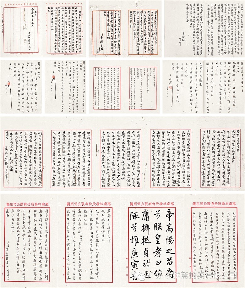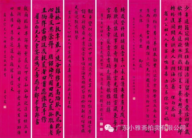 水墨绢本红笺 六屏