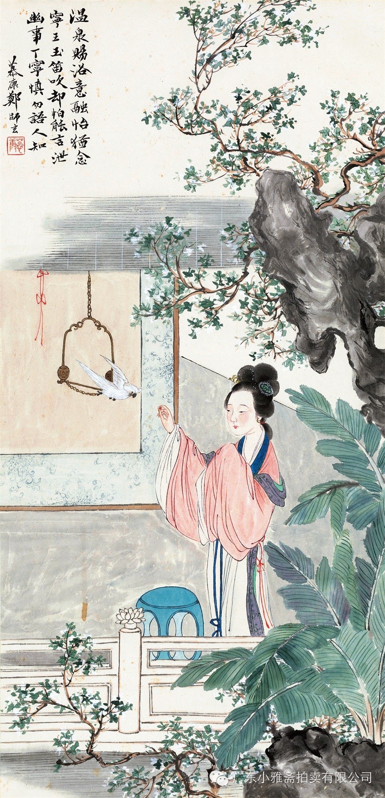 郑慕康(1901-1982),名师元、师玄,号慕康,广东潮阳人。擅长人物画,兼工诗书。所作仕女,像貌古雅秀丽,仪态端庄,颇能传神。1959年被聘为上海美术学校国画系教师,1960年上海中国画院成立,郑慕康是首批入聘的画师之一,民国时期潮汕名震上海的画家之一,中国美术家协会员,上海市文史馆馆员。
