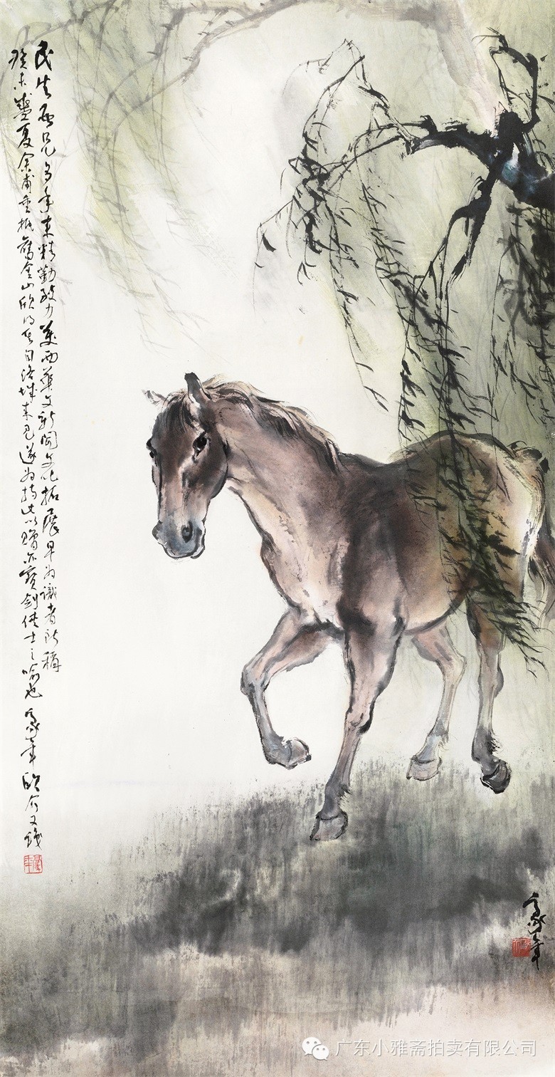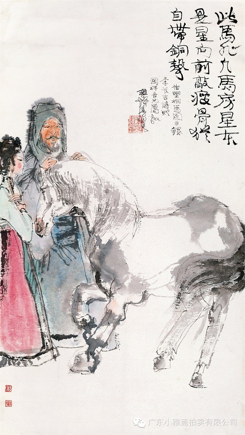 款识:此马非凡马,房星本是星。向前敲瘦骨,犹自带铜声。伯乐相马图并录李长吉诗赠国祥吾兄属教,程十髮漫笔。