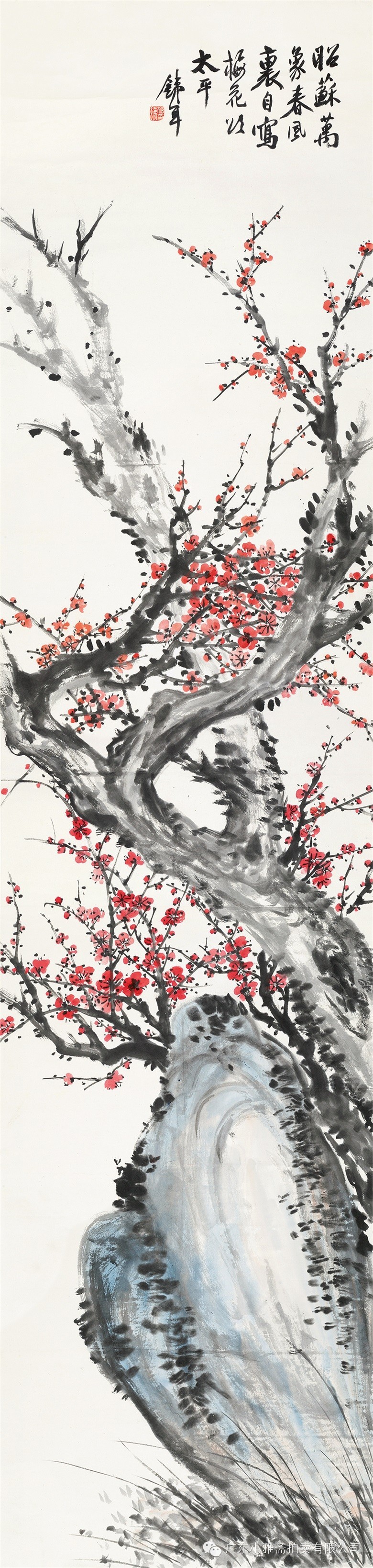 款识:昭苏万象春风里,自写梅花颂太平。铁年。