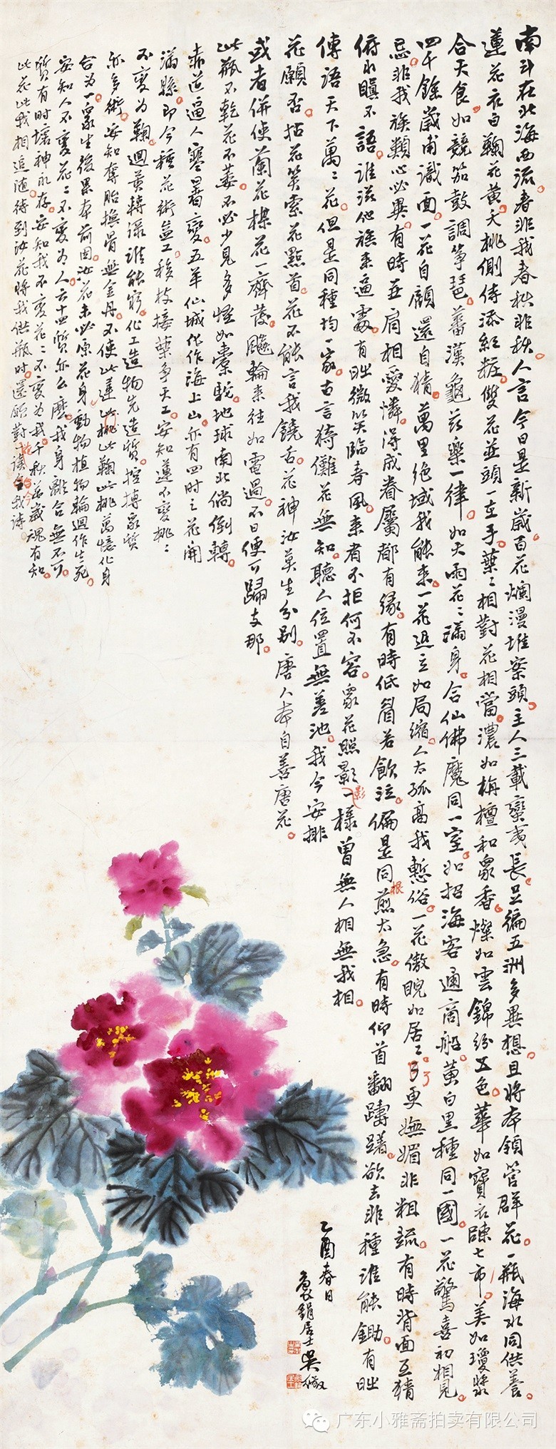 款识:耐寒岂独松梅竹,更有此花冬更红。国祥先生清赏,乙丑少昂时年八一。