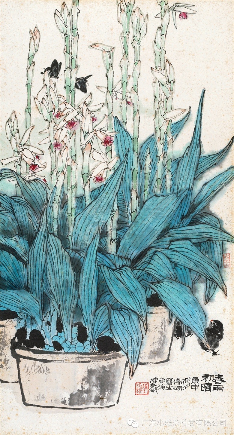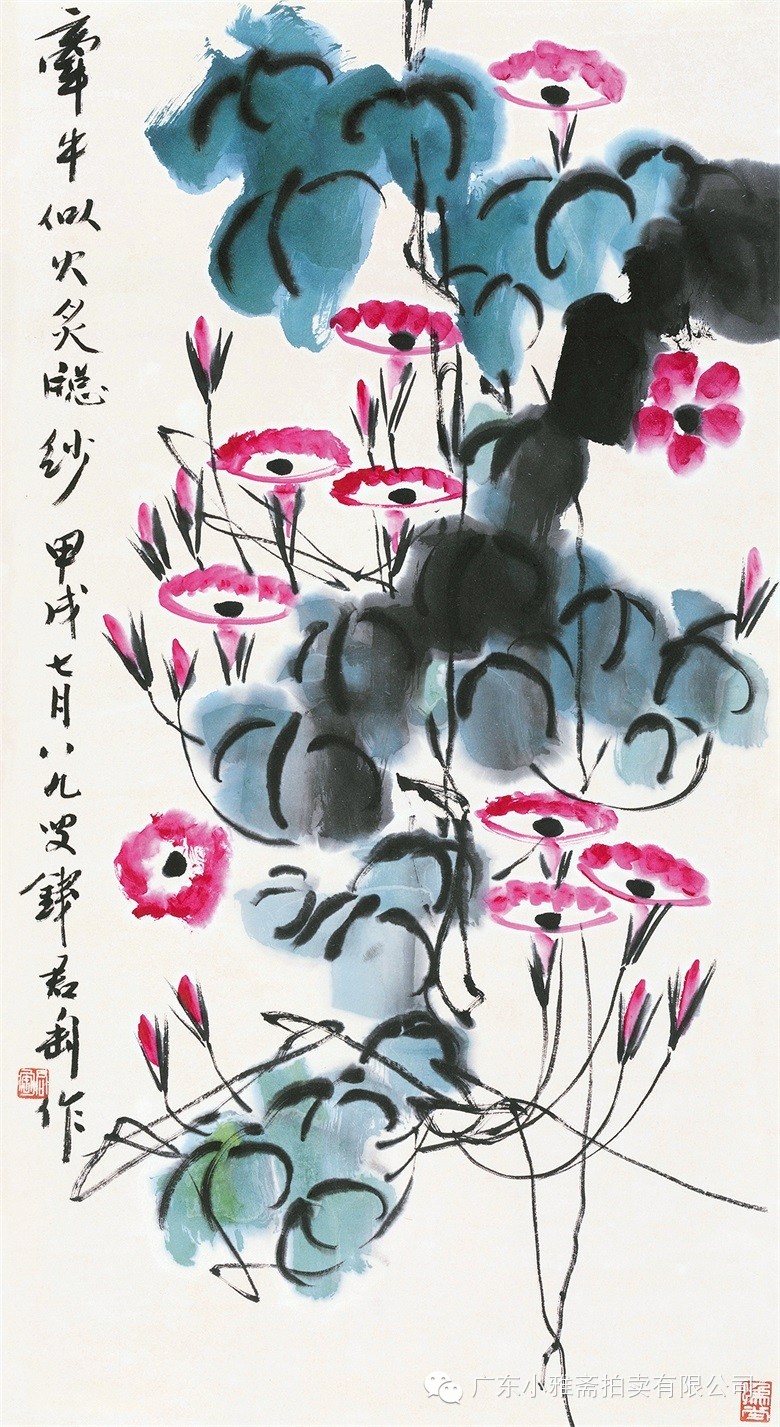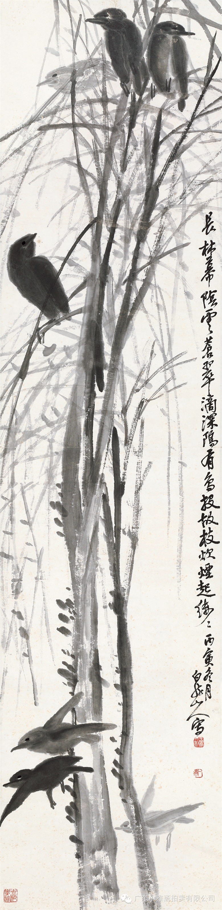 赵少昂(1903-1998),字叔仪,广东番禺人。工书、擅画,山水、人物、游鱼、走兽而外,花鸟、草虫,尤为卓绝。徐悲鸿许为“中国第一人,当世罕出其右”。岭南画派四大家之一。广州市立美术学校中国画系主任,广州大学美术科教授。