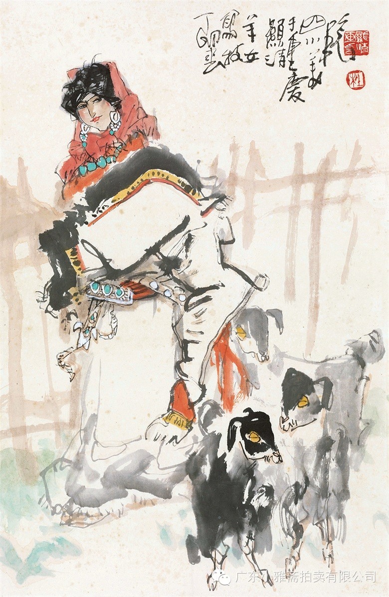 款识:丁卯春写牧羊女,显清于重庆四川美院。