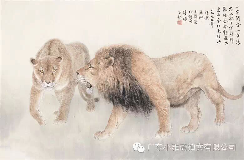 款识:一方闭合一方张,忠心耿耿护财郎。张张合合勤进出,东西南北来往忙。一九九九年深秋画狮。王锦葵作诗句,楚雄幷记。