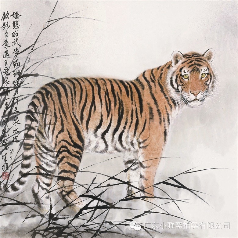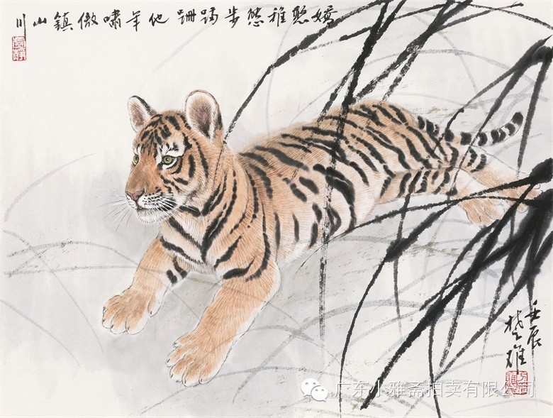 款识:娇憨威武步蹒跚,踽踽行来泉水边。顾影自豪还自爱,长啸一声群兽惊。癸未,楚雄。