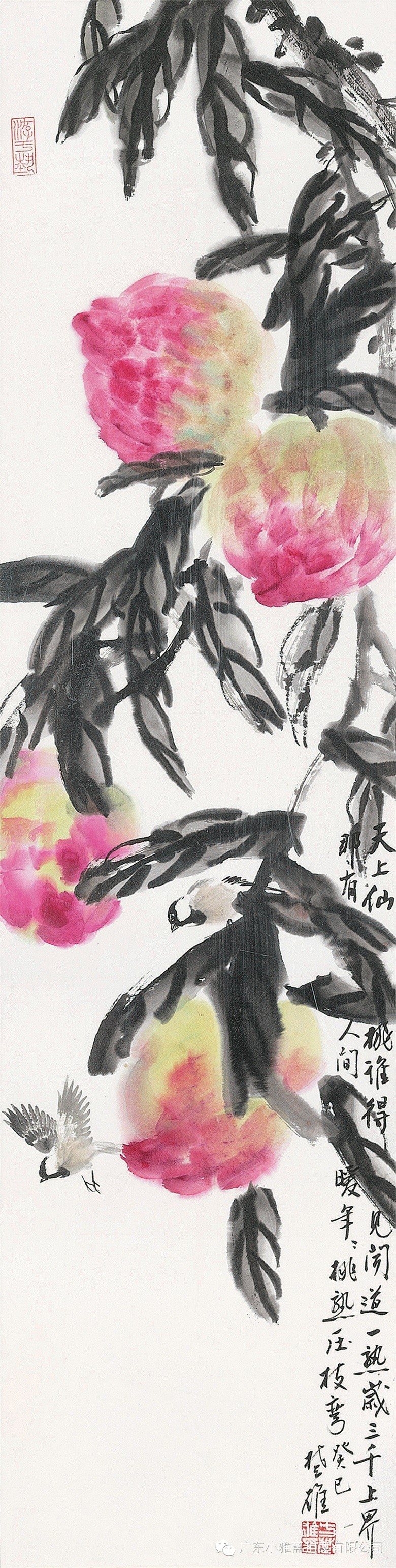 款识:天上仙桃谁得见?闻道一熟岁三千。上界那有人问暖,年年桃熟压枝弯。癸巳,楚雄。